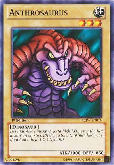 Dis man-like dinosawz gotta high I.Q., even tho he’s lackin’ in da strength depawtment. (Kinda like yooz, if ya had a high I.Q.! Nyaah!)