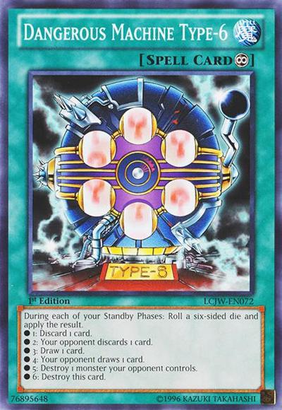 During each of your Standby Phases: Roll a six-sided die and apply the result.● 1: Discard 1 card.● 2: Your opponent discards 1 card.● 3: Draw 1 card.● 4: Your opponent draws 1 card.● 5: Destroy 1 monster your opponent controls.● 6: Destroy this card.