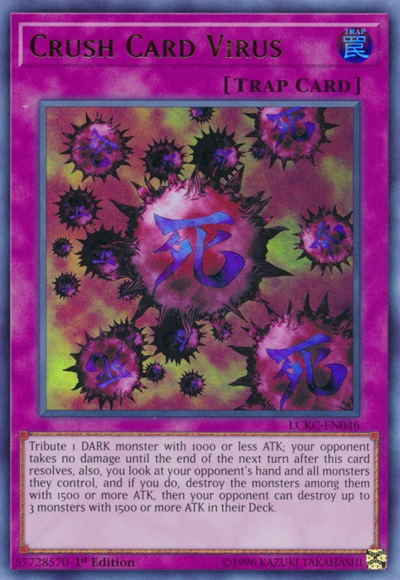 Tribute 1 DARK monster with 1000 or less ATK; your opponent takes no damage until the end of the next turn after this card resolves, also, you look at your opponent’s hand and all monsters they control, and if you do, destroy the monsters among them with 1500 or more ATK, then your opponent can destroy up to 3 monsters with 1500 or more ATK in their Deck.