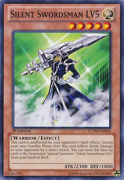 Unaffected by your opponent’s Spell effects. During your next Standby Phase after this card inflicts battle damage to your opponent by a direct attack: You can send this face-up card to the Graveyard; Special Summon 1 ‘Silent Swordsman LV7’ from your hand or Deck.