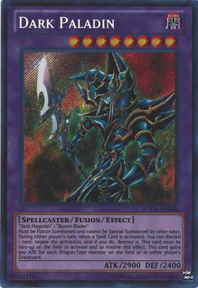 ‘Dark Magician’ + ‘Buster Blader’Must be Fusion Summoned. When a Spell Card is activated (Quick Effect): You can discard 1 card; negate the activation, and if you do, destroy it. This card must be face-up on the field to activate and to resolve this effect. Gains 500 ATK for each Dragon monster on the field and in the GY.