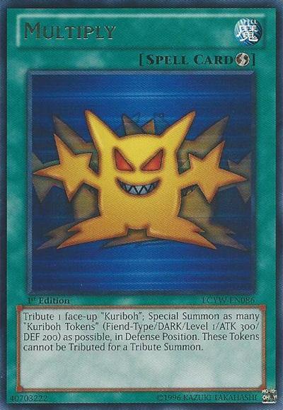 Tribute 1 face-up ‘Kuriboh’; Special Summon as many ‘Kuriboh Tokens’ (Fiend/DARK/Level 1/ATK 300/DEF 200) as possible, in Defense Position. They cannot be Tributed for a Tribute Summon.