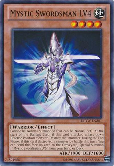 Cannot be Normal Summoned (but can be Normal Set). At the start of the Damage Step, if this card attacked a face-down Defense Position monster: Destroy that monster. During the End Phase, if this card destroyed a monster by battle this turn: You can send this face-up card to the Graveyard; Special Summon 1 ‘Mystic Swordsman LV6’ from your hand or Deck.