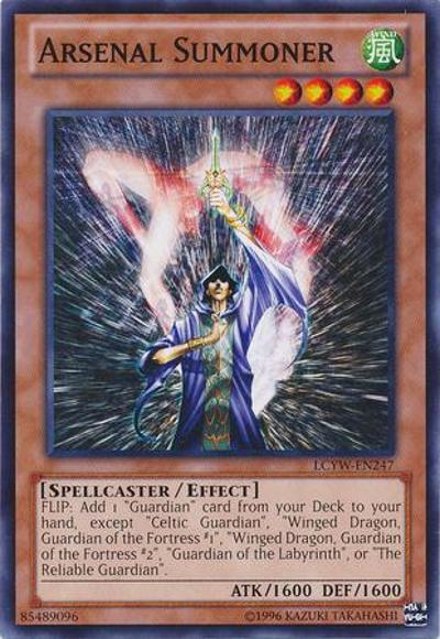 FLIP: Add 1 ‘Guardian’ card from your Deck to your hand, except ‘Celtic Guardian’, ‘Winged Dragon, Guardian of the Fortress #1’, ‘Winged Dragon, Guardian of the Fortress #2’, ‘Guardian of the Labyrinth’, or ‘The Reliable Guardian’.
