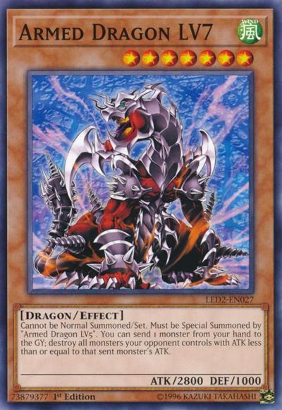 Cannot be Normal Summoned/Set. Must be Special Summoned by ‘Armed Dragon LV5’. You can send 1 monster from your hand to the GY; destroy all monsters your opponent controls with ATK less than or equal to that sent monster’s ATK.