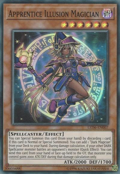 You can Special Summon this card (from your hand) by discarding 1 card. If this card is Normal or Special Summoned: You can add 1 ‘Dark Magician’ from your Deck to your hand. During damage calculation, if your other DARK Spellcaster monster battles an opponent’s monster (Quick Effect): You can send this card from your hand or face-up field to the GY; that monster you control gains 2000 ATK/DEF during that damage calculation only.