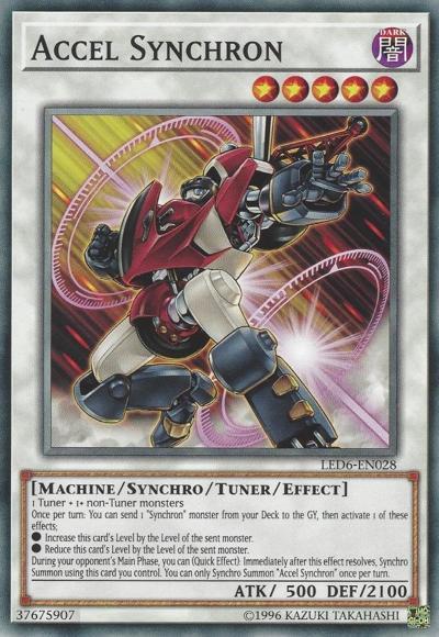 1 Tuner + 1+ non-Tuner monstersOnce per turn: You can send 1 ‘Synchron’ monster from your Deck to the GY, then activate 1 of these effects;● Increase this card’s Level by the Level of the sent monster.● Reduce this card’s Level by the Level of the sent monster.During your opponent’s Main Phase, you can (Quick Effect): Immediately after this effect resolves, Synchro Summon using this card you control. You can only Synchro Summon ‘Accel Synchron’ once per turn.