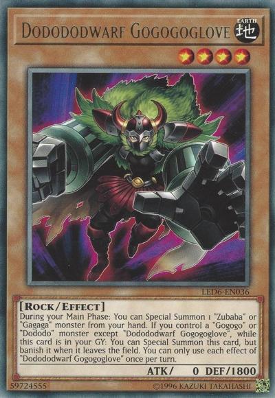 During your Main Phase: You can Special Summon 1 ‘Zubaba’ or ‘Gagaga’ monster from your hand. If you control a ‘Gogogo’ or ‘Dododo’ monster except ‘Dodododwarf Gogogoglove’, while this card is in your GY: You can Special Summon this card, but banish it when it leaves the field. You can only use each effect of ‘Dodododwarf Gogogoglove’ once per turn.