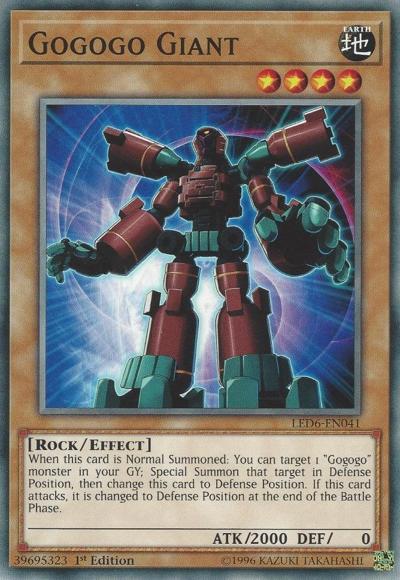 When this card is Normal Summoned: You can target 1 ‘Gogogo’ monster in your GY; Special Summon that target in Defense Position, then change this card to Defense Position. If this card attacks, it is changed to Defense Position at the end of the Battle Phase.
