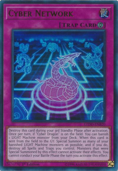 Destroy this card during your 3rd Standby Phase after activation. Once per turn, if ‘Cyber Dragon’ is on the field: You can banish 1 LIGHT Machine monster from your Deck. When this card is sent from the field to the GY: Special Summon as many of your banished LIGHT Machine monsters as possible, and if you do, destroy all Spells and Traps you control. Monsters that were Special Summoned by this effect cannot activate their effects. You cannot conduct your Battle Phase the turn you activate this effect.