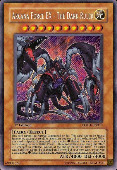 Cannot be Normal Summoned/Set. Must be Special Summoned (from your hand) by sending 3 monsters you control to the Graveyard, and cannot be Special Summoned by other ways. When this card is Special Summoned: Toss a coin and gain the appropriate effect.● Heads: This card can make a second attack during each Battle Phase, but if it does so using this effect, change it to Defense Position at the end of the Battle Phase. Its battle position cannot be changed until the end of your next turn.● Tails: If this card is destroyed, destroy all cards on the field.