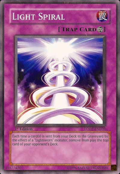 Each time a card(s) is sent from your Deck to the Graveyard by the effect of a ‘Lightsworn’ monster, remove from play the top card of your opponent’s Deck.