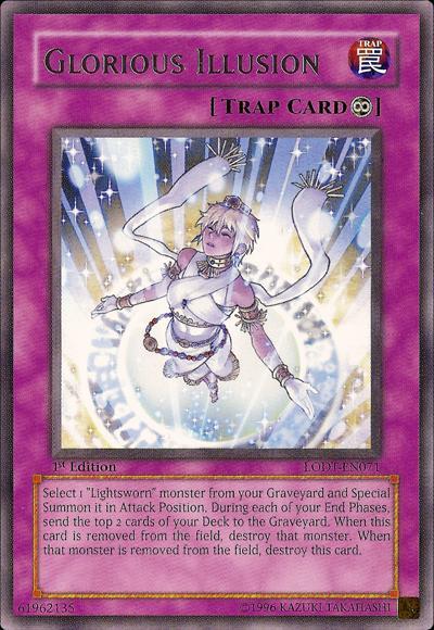 Activate this card by targeting 1 ‘Lightsworn’ monster in your Graveyard; Special Summon that target in face-up Attack Position. During each of your End Phases: Send the top 2 cards of your Deck to the Graveyard. When this card leaves the field, destroy that monster. When that monster leaves the field, destroy this card.