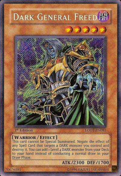 Cannot be Special Summoned. Negate any Spell effects that target a face-up DARK monster(s) you control, and if you do, destroy that Spell Card. During your Draw Phase, instead of conducting your normal draw: You can add 1 Level 4 DARK monster from your Deck to your hand. This card must be face-up on the field to activate and to resolve this effect.