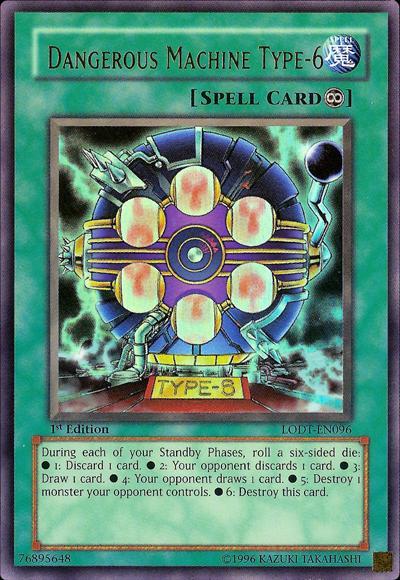 During each of your Standby Phases: Roll a six-sided die and apply the result.● 1: Discard 1 card.● 2: Your opponent discards 1 card.● 3: Draw 1 card.● 4: Your opponent draws 1 card.● 5: Destroy 1 monster your opponent controls.● 6: Destroy this card.