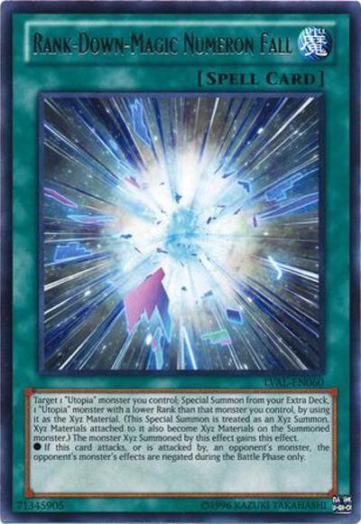 Target 1 ‘Utopia’ monster you control; Special Summon from your Extra Deck, 1 ‘Utopia’ monster with a lower Rank than that monster you control, by using it as the Xyz Material. (This Special Summon is treated as an Xyz Summon. Xyz Materials attached to it also become Xyz Materials on the Summoned monster.) The monster Xyz Summoned by this effect gains this effect.● If this card attacks, or is attacked by, an opponent’s monster, the opponent’s monster’s effects are negated during the Battle Phase only.
