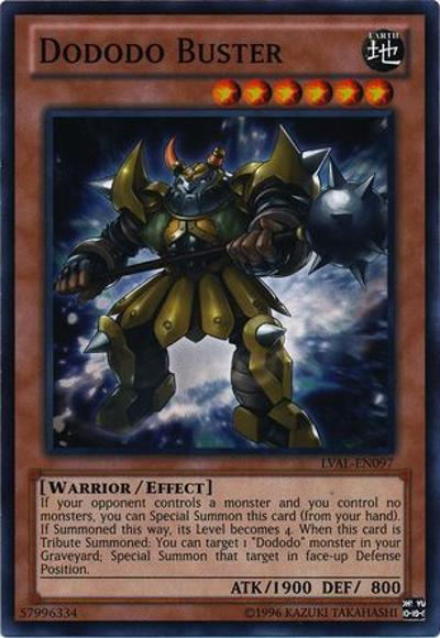 If only your opponent controls a monster, you can Special Summon this card (from your hand). If Summoned this way, its Level becomes 4. When this card is Tribute Summoned: You can target 1 ‘Dododo’ monster in your GY; Special Summon that target in Defense Position.