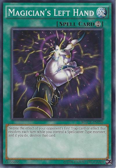 Negate the effect of your opponent’s first Trap Card or effect that resolves each turn while you control a Spellcaster monster, and if you do, destroy that card.