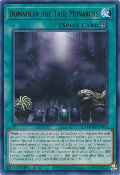 While you have no cards in your Extra Deck and you are the only player that controls a Tribute Summoned monster, your opponent cannot Special Summon monsters from the Extra Deck. If a Tribute Summoned monster you control attacks an opponent’s monster, it gains 800 ATK during damage calculation only. Once per turn: You can reduce the Level of 1 monster with 2800 ATK and 1000 DEF in your hand by 2 until the end of this turn (even after they are Summoned/Set, and even if this card leaves the field).