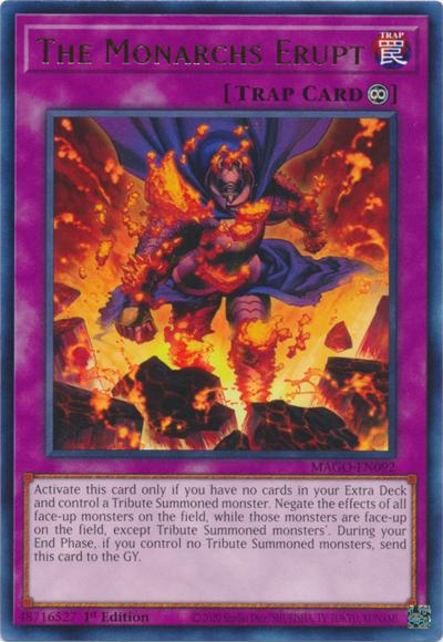 Activate this card only if you have no cards in your Extra Deck and control a Tribute Summoned monster. Negate the effects of all face-up monsters on the field, while those monsters are face-up on the field, except Tribute Summoned monsters’. During your End Phase, if you control no Tribute Summoned monsters, send this card to the Graveyard.