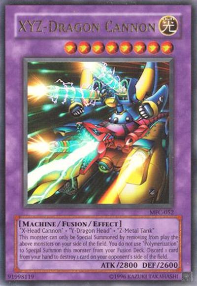 ‘X-Head Cannon’ + ‘Y-Dragon Head’ + ‘Z-Metal Tank’Must first be Special Summoned (from your Extra Deck) by banishing the above cards you control. (You do not use ‘Polymerization’.) Cannot be Special Summoned from the GY. You can discard 1 card, then target 1 card your opponent controls; destroy that target.