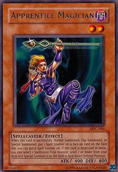 If this card is Summoned: Target 1 face-up card on the field that you can place a Spell Counter on; place 1 Spell Counter on that target. If this card is destroyed by battle: You can Special Summon 1 Level 2 or lower Spellcaster monster from your Deck in face-down Defense Position.