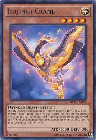 During damage calculation (in either player’s turn), if a Beast-Warrior-Type ‘Bujin’ monster you control battles an opponent’s monster: You can send this card from your hand to the Graveyard; the ATK of your monster becomes double its original ATK, during that damage calculation only.