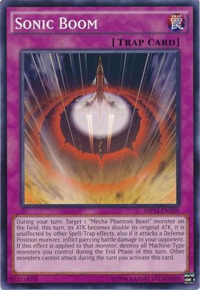 During your turn: Target 1 ‘Mecha Phantom Beast’ monster on the field; this turn, its ATK becomes double its original ATK, it is unaffected by other Spell/Trap effects, also if it attacks a Defense Position monster, inflict piercing battle damage to your opponent. If this effect is applied to that monster, destroy all Machine-Type monsters you control during the End Phase of this turn. Other monsters cannot attack during the turn you activate this card.