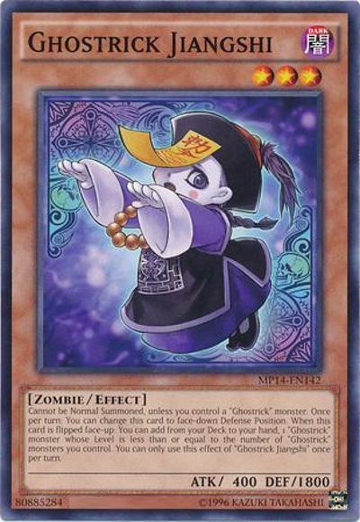 Cannot be Normal Summoned, unless you control a ‘Ghostrick’ monster. Once per turn: You can change this card to face-down Defense Position. When this card is flipped face-up: You can add from your Deck to your hand, 1 ‘Ghostrick’ monster whose Level is less than or equal to the number of ‘Ghostrick’ monsters you control. You can only use this effect of ‘Ghostrick Jiangshi’ once per turn.