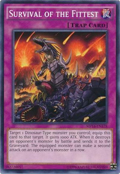 Target 1 Dinosaur-Type monster you control; equip this card to that target. It gains 1000 ATK. When that attacking monster destroys an opponent’s monster by battle and sends it to the Graveyard: You can activate this effect; the equipped monster can make a second attack on an opponent’s monster in a row.