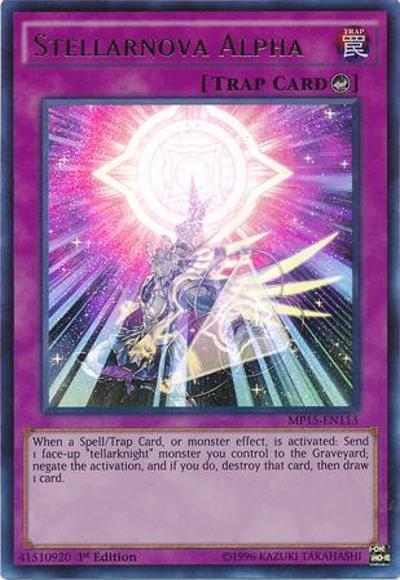 When a Spell/Trap Card, or monster effect, is activated: Send 1 face-up ‘tellarknight’ monster you control to the Graveyard; negate the activation, and if you do, destroy that card, then draw 1 card.