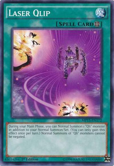 During your Main Phase, you can Normal Summon 1 ‘Qli’ monster in addition to your Normal Summon/Set. (You can only gain this effect once per turn.) Normal Summons of ‘Qli’ monsters cannot be negated.