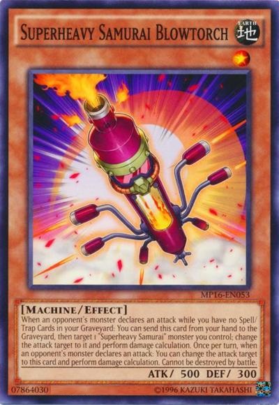 When an opponent’s monster declares an attack while you have no Spell/Trap Cards in your Graveyard: You can send this card from your hand to the Graveyard, then target 1 ‘Superheavy Samurai’ monster you control; change the attack target to it and perform damage calculation. Once per turn, when an opponent’s monster declares an attack: You can change the attack target to this card and perform damage calculation. Cannot be destroyed by battle.