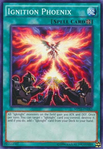 All ‘Igknight’ monsters on the field gain 300 ATK and DEF. Once per turn: You can target 1 ‘Igknight’ card you control; destroy it, and if you do, add 1 ‘Igknight’ card from your Deck to your hand.