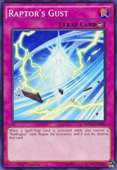 When a Spell/Trap Card is activated while you control a ‘Raidraptor’ card: Negate the activation, and if you do, destroy that card.