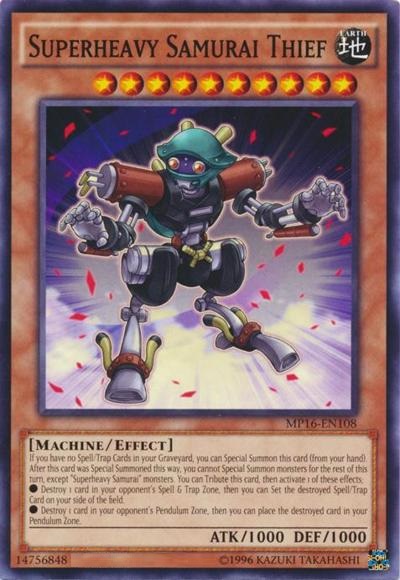 If you have no Spell/Trap Cards in your Graveyard, you can Special Summon this card (from your hand). After this card was Special Summoned this way, you cannot Special Summon monsters for the rest of this turn, except ‘Superheavy Samurai’ monsters. You can Tribute this card, then activate 1 of these effects;● Destroy 1 card in your opponent’s Spell & Trap Zone, then you can Set the destroyed Spell/Trap Card on your side of the field.● Destroy 1 card in your opponent’s Pendulum Zone, then you can place the destroyed card in your Pendulum Zone.