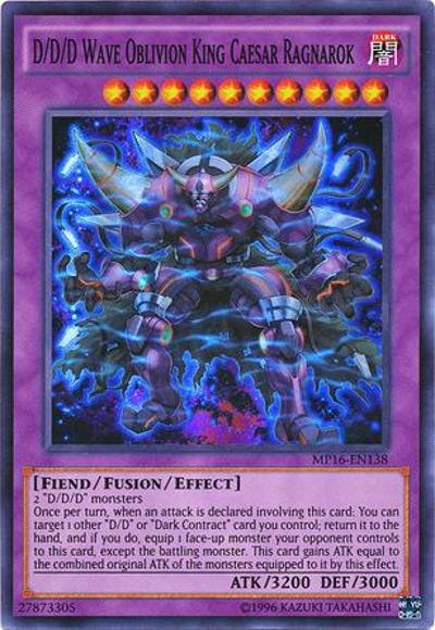 2 ‘D/D/D’ monstersOnce per turn, when an attack is declared involving this card: You can target 1 other ‘D/D’ or ‘Dark Contract’ card you control; return it to the hand, and if you do, equip 1 face-up monster your opponent controls to this card, except the battling monster. This card gains ATK equal to the combined original ATK of the monsters equipped to it by this effect.