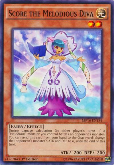 During damage calculation (in either player’s turn), if a ‘Melodious’ monster you control battles an opponent’s monster: You can send this card from your hand to the Graveyard; change that opponent’s monster’s ATK and DEF to 0, until the end of this turn.