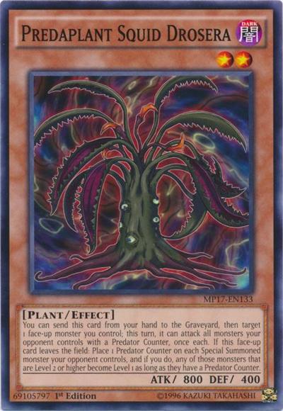 You can send this card from your hand to the Graveyard, then target 1 face-up monster you control; this turn, it can attack all monsters your opponent controls with a Predator Counter, once each. If this face-up card leaves the field: Place 1 Predator Counter on each Special Summoned monster your opponent controls, and if you do, any of those monsters that are Level 2 or higher become Level 1 as long as they have a Predator Counter.