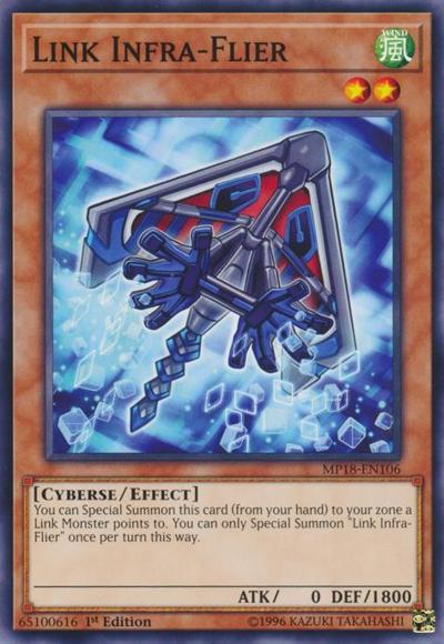 You can Special Summon this card (from your hand) to your zone a Link Monster points to. You can only Special Summon ‘Link Infra-Flier’ once per turn this way.
