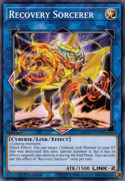2 Cyberse monsters(Quick Effect): You can target 1 Cyberse Link Monster in your GY that was destroyed this turn; Special Summon it, but it has its effects negated, also destroy it during the End Phase. You can only use this effect of ‘Recovery Sorcerer’ once per turn.
