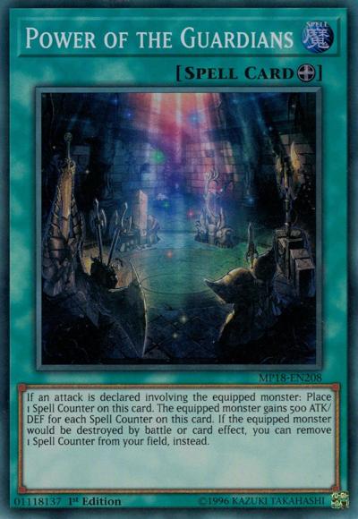 If an attack is declared involving the equipped monster: Place 1 Spell Counter on this card. The equipped monster gains 500 ATK/DEF for each Spell Counter on this card. If the equipped monster would be destroyed by battle or card effect, you can remove 1 Spell Counter from your field, instead.