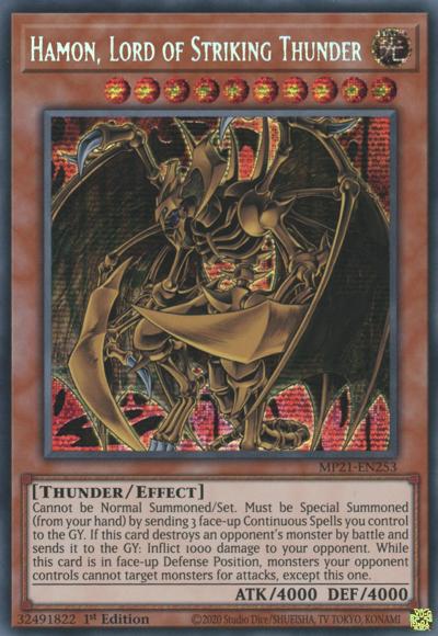 Cannot be Normal Summoned/Set. Must be Special Summoned (from your hand) by sending 3 face-up Continuous Spell Cards you control to the Graveyard, and cannot be Special Summoned by other ways. If this card destroys an opponent’s monster by battle and sends it to the Graveyard: Inflict 1000 damage to your opponent. While this card is in face-up Defense Position, monsters your opponent controls cannot target monsters for attacks, except this one.