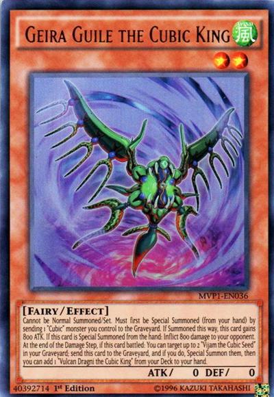 Cannot be Normal Summoned/Set. Must first be Special Summoned (from your hand) by sending 1 ‘Cubic’ monster you control to the Graveyard. If Summoned this way, this card gains 800 ATK. If this card is Special Summoned from the hand: Inflict 800 damage to your opponent. At the end of the Damage Step, if this card battled: You can target up to 2 ‘Vijam the Cubic Seed’ in your Graveyard; send this card to the Graveyard, and if you do, Special Summon them, then you can add 1 ‘Vulcan Dragni the Cubic King’ from your Deck to your hand.