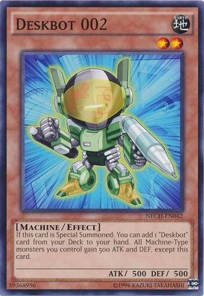 If this card is Special Summoned: You can add 1 ‘Deskbot’ card from your Deck to your hand. All Machine-Type monsters you control gain 500 ATK and DEF, except this card.