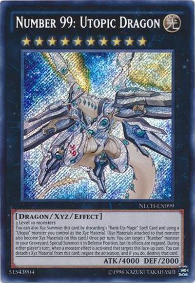 3 Level 10 monstersYou can also Xyz Summon this card by discarding 1 ‘Rank-Up-Magic’ Spell Card and using a ‘Utopia’ monster you control as the Xyz Material. (Xyz Materials attached to that monster also become Xyz Materials on this card.) Once per turn: You can target 1 ‘Number’ monster in your Graveyard; Special Summon it in Defense Position, but its effects are negated. During either player’s turn, when a monster effect is activated that targets this face-up card: You can detach 1 Xyz Material from this card; negate the activation, and if you do, destroy that card.