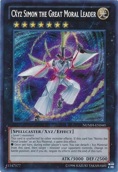 3 Level 7 monstersThis card is unaffected by other monster effects. If this card has ‘Norito the Moral Leader’ as an Xyz Material, it gains this effect.● Once per turn, during either player’s turn: You can detach 1 Xyz Material from this card, then target 1 monster your opponent controls; change its battle position, and if you do, negate its effects until the end of this turn.