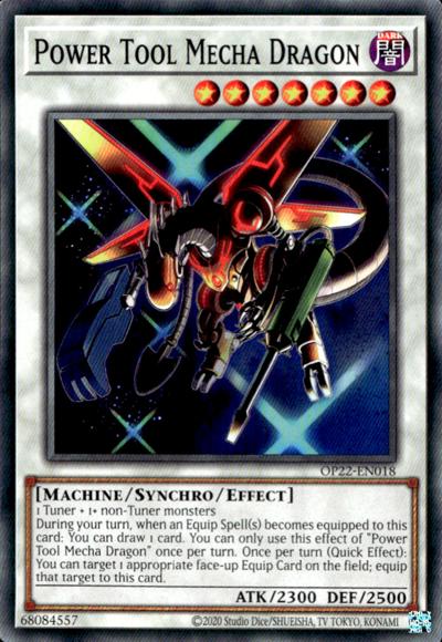 1 Tuner + 1 or more non-Tuner monstersDuring your turn, when an Equip Spell Card(s) is equipped to this card: You can draw 1 card. You can only use this effect of ‘Power Tool Mecha Dragon’ once per turn. Once per turn, during either player’s turn: You can target 1 appropriate face-up Equip Card on the field; equip that target to this card.