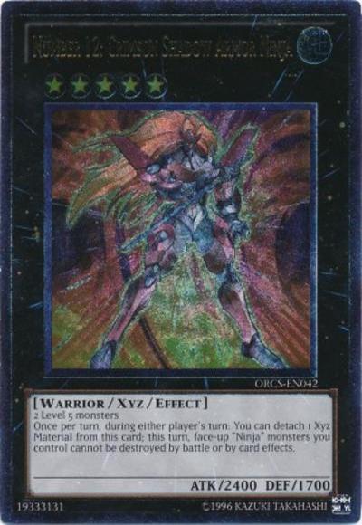 2 Level 5 monstersOnce per turn, during either player’s turn: You can detach 1 Xyz Material from this card; this turn, face-up ‘Ninja’ monsters you control cannot be destroyed by battle or by card effects.
