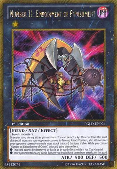 2 Level 1 monstersOnce per turn, during either player’s turn: You can detach 1 Xyz Material from this card; change all monsters your opponent controls to face-up Attack Position, also all monsters your opponent currently controls must attack this card this turn, if able. While you control ‘Number 13: Embodiment of Crime’, this card gains these effects.● This card cannot be destroyed by battle or by card effects while it has Xyz Material.● Your opponent takes any battle damage you would have taken from attacks on this card.